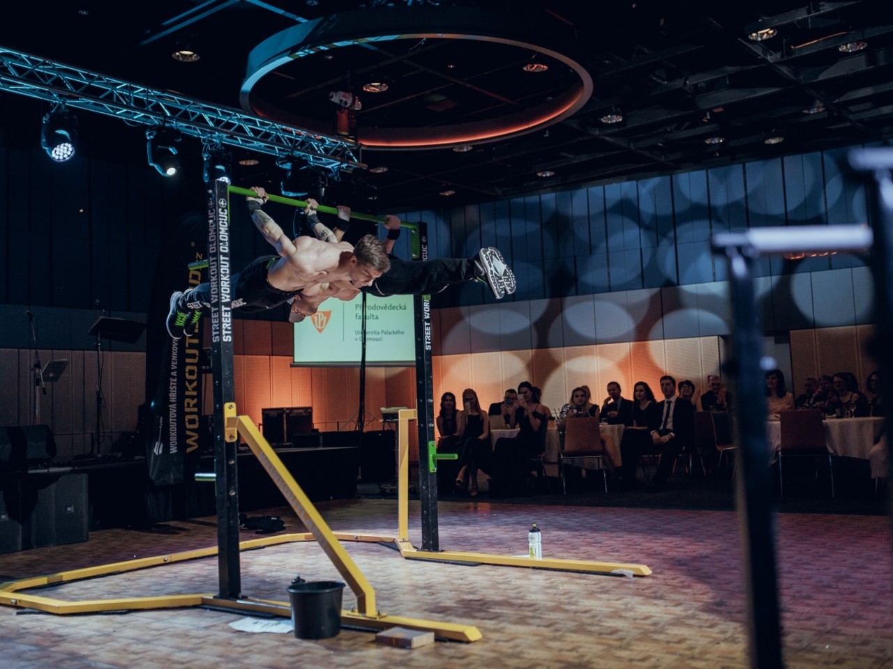 Kromě tance mohli návštěvníci plesu shlédnout i vystoupení skupiny Street Workout Olomouc s vlastní váhou těla. Ne příliš překvapivě získalo právě toto číslo veliký ohlas u dam, které hned na začátku moderátor namotivoval tak, že za neutichajícího povzbuzování přiměly pány k odhalení vypracovaných těl. Následovala neuvěřitelná akrobacie na hrazdě, kterou nakonec museli ocenit i pánové. Po vystoupení byla vyhlášena minisoutěž na hrazdě, návštěvníci si mohli aktivity předváděné Michalem a Lukášem vyzkoušet, případně se s nimi vyfotit.