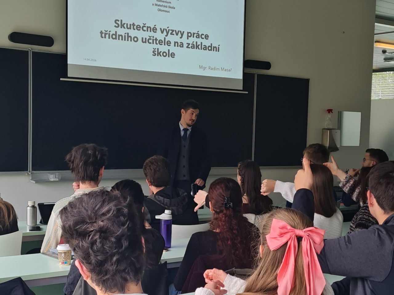 „Beseda s názvem Skutečné výzvy práce třídního učitele na ZŠ nabídla otevřený a místy velmi autentický pohled na profesi, která zdaleka nespočívá pouze ve výuce. Radim Masař sdílel zkušenosti ze své šestileté praxe. Zaměřil se zejména na otázky komunikace se žáky a rodiči, na práci se žáky se speciálními vzdělávacími potřebami, na své zkušenosti s OSPOD při řešení neomluvených absencí žáků 9. ročníku či případů domácího násilí,“ uvedla organizátorka akce Jana Slezáková.