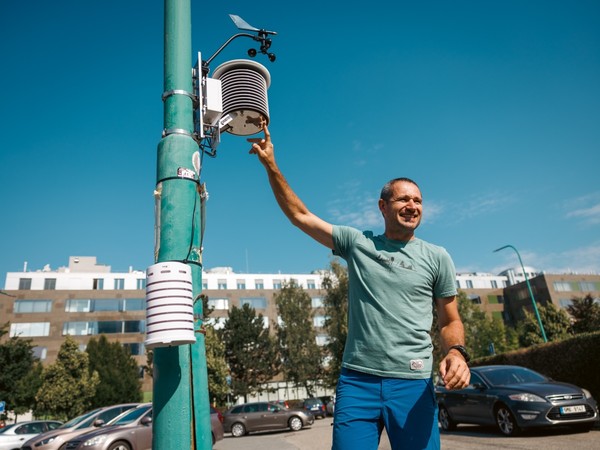 Na vybraných místech jsou instalována čidla, která měří teplotu povrchu i pod povrchem – konkrétně v hloubkách 6 a 30 cm. „Snažíme se sledovat výskyt městských tepelných ostrovů, které vznikají tak, že se povrch během dne silně zahřívá a v noci vyzařuje zbytkové teplo,“ vysvětluje. Proto měříme teploty ve více úrovních. Systém zahrnuje také senzory pro sledování rychlosti a směru větru a relativní vlhkosti vzduchu. V nejbližší době bude navíc na střeše přírodovědecké fakulty instalována pokročilejší meteorologická stanice, která umožní měřit i srážky a intenzitu slunečního záření,“ doplnil Jaroslav Burian.