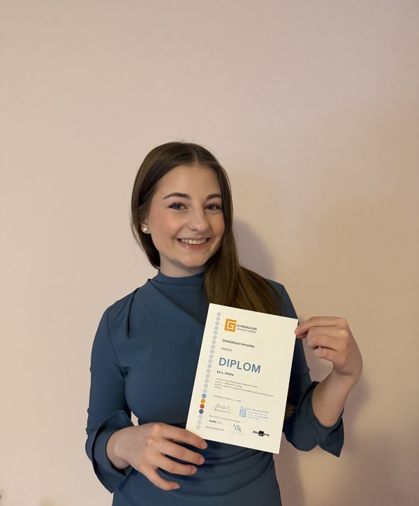 Veronika postoupila do krajského kola SOČ a my jí přejeme mnoho dalších úspěchů a děkujeme za úspěšnou reprezentaci. ️