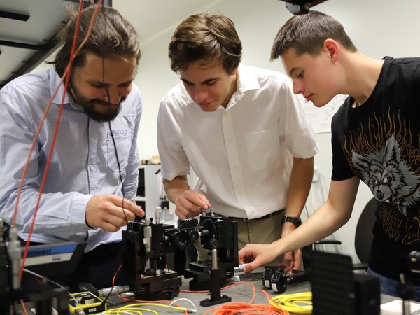 Pět ze čtrnácti středoškolských studentů, kteří se zúčastnili červnové Letní školy optiky, si koncem srpna vyzkoušelo vědecký experiment ve Společné laboratoři optiky, společném pracovišti Univerzity Palackého a Fyzikálního ústavu Akademie věd ČR. Studenti si vyzkoušeli speciální metodu výroby tenkých vrstev slitin kovů či keramtických materiálů a provedli pokusy s páry korelovaných fotonů.