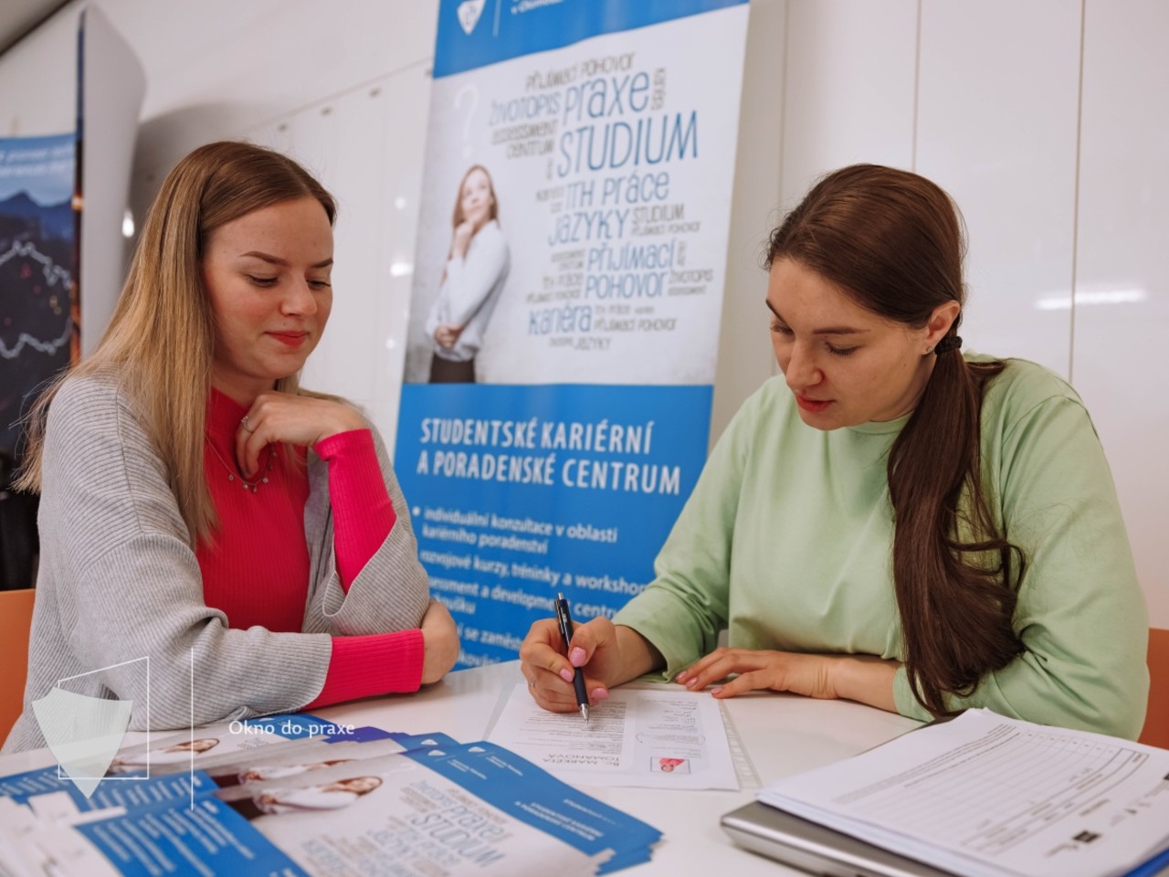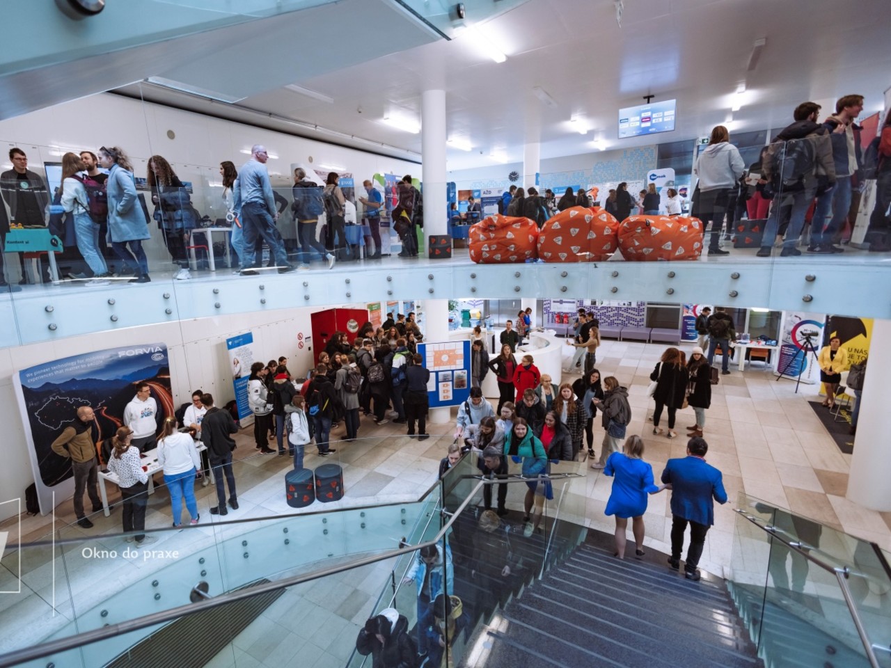 Studenti se na veletrhu Okno do praxe vyplněním dotazníku mohli zapojit do soutěže o hodnotné ceny, ochutnat palačinky nebo relaxovat v chill out zóně.