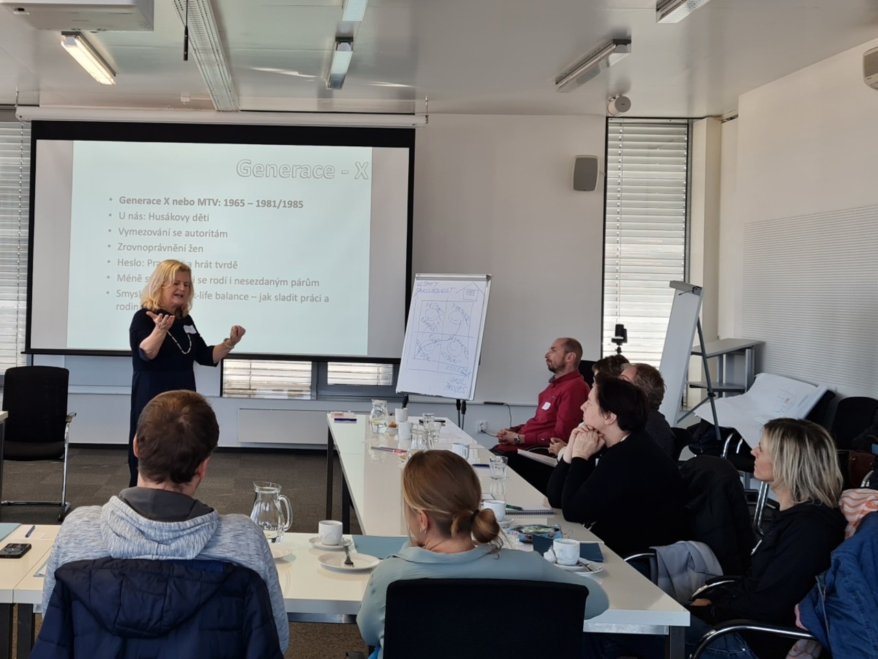 Na workshop byli přizváni také studenti navazujícího magisterského studia učitelství a doktorandi v didaktice fyziky. Program se věnoval komunikaci napříč generacemi (Baby Boomers, X, Y, Z, Alfa, Beta), vnímání odlišností a aktuálním trendům ve vedení lidí jako jsou Diverzitní, Age a Talent Management.