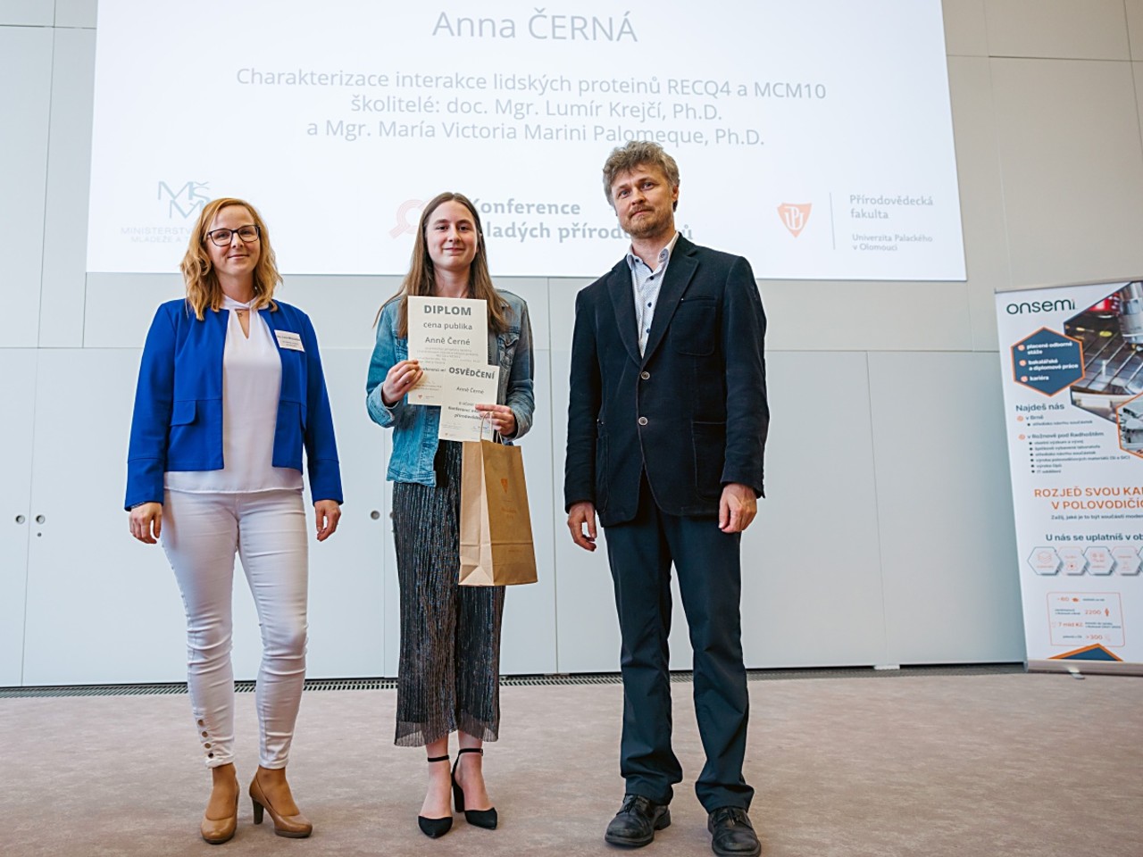 Cenu publika v sekci Biologie, ekologie a životní prostředí, Matematika a informatika, Fyzika získala Anna Černá s Klvaňova gymnázia a střední zdravotnické školy Kyjov s prací Charakterizace interakce lidských proteinů RECQ4 a MCM10. Všichni ocenění studují na středních školách, které jsou fakultními školami přírodovědecké fakulty.